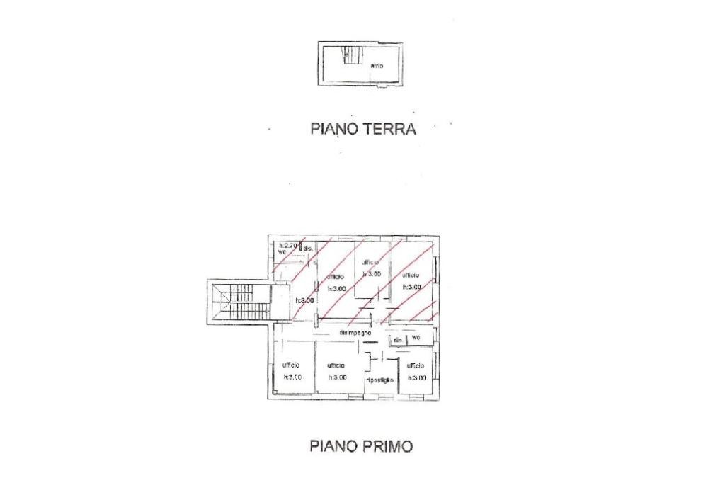L'ufficio è composto comee indicato nella planimetria da n. 3 stanze uso ufficio, ripostiglio, disimpegno e servizio igienico finestrato.