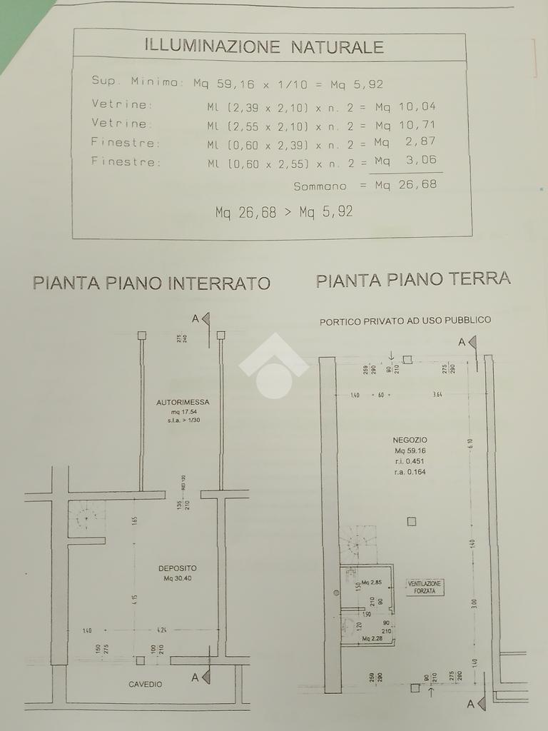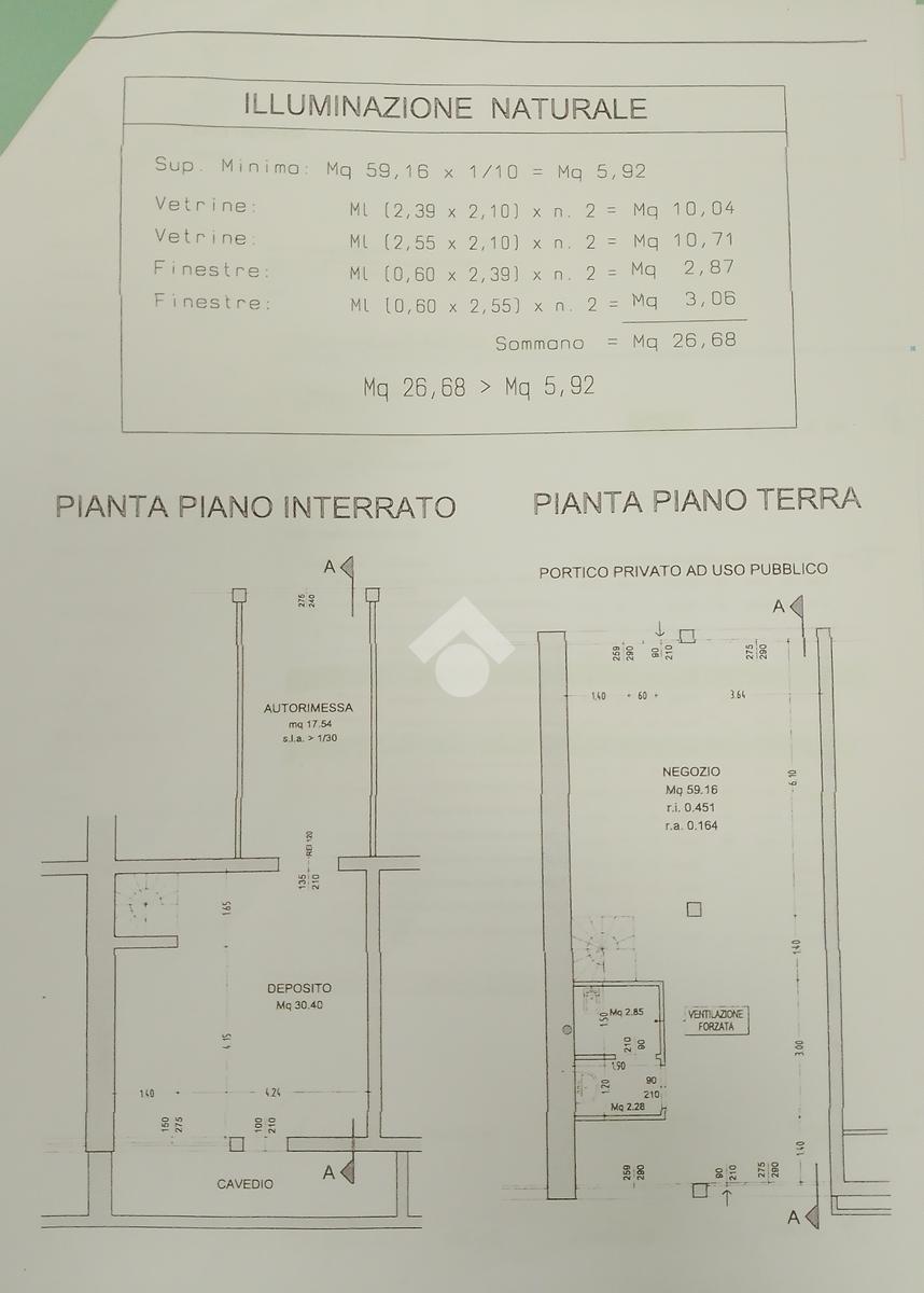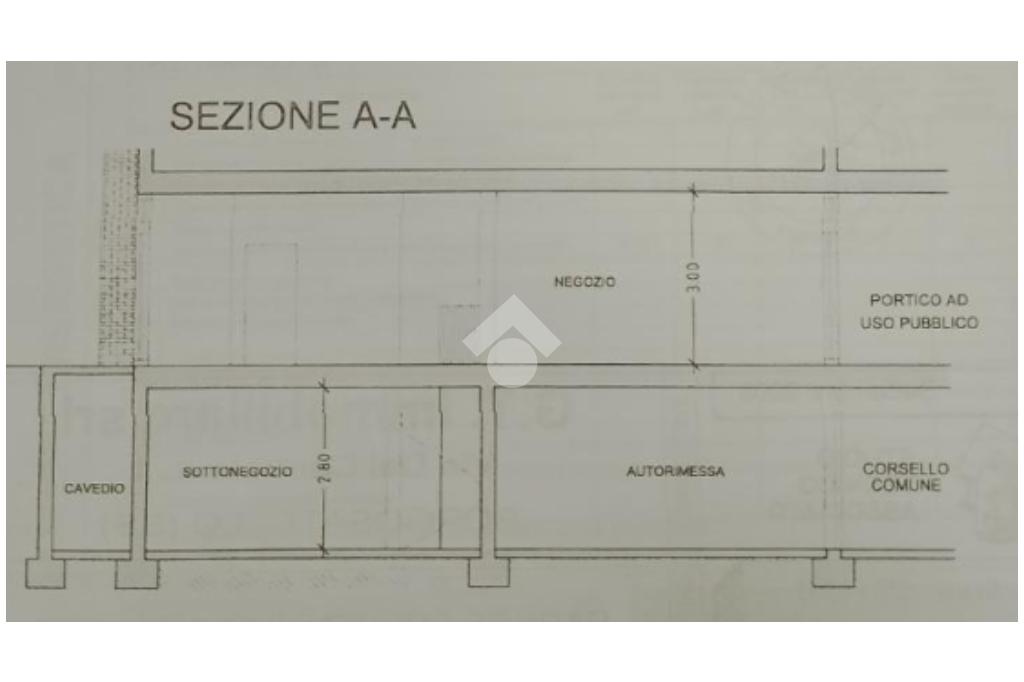 Sotto negozio di circa 30 mq, piastrellato e con altezza interna di circa 2,80 metri. Sono presenti delle finestre con 'bocche di lupo' utili ad areare ed illuminare il locale. E' presente anche una nicchia esterna dove è installata la caldaia (con relativo cavedio per la cappa).