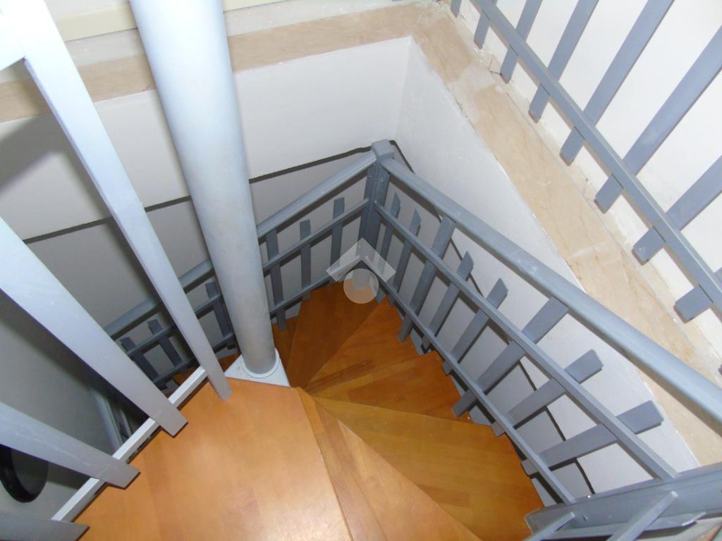 A piano terra si presenta un open space di circa 70 mq comprensivo di archivio/magazzino, servizio igienico (uomo donna e disabile) con antibagno e nicchia vano scala interno. Pavimentazione in ceramica (attualmente rivestito in laminato) ed altezza interna di circa 3 metri.