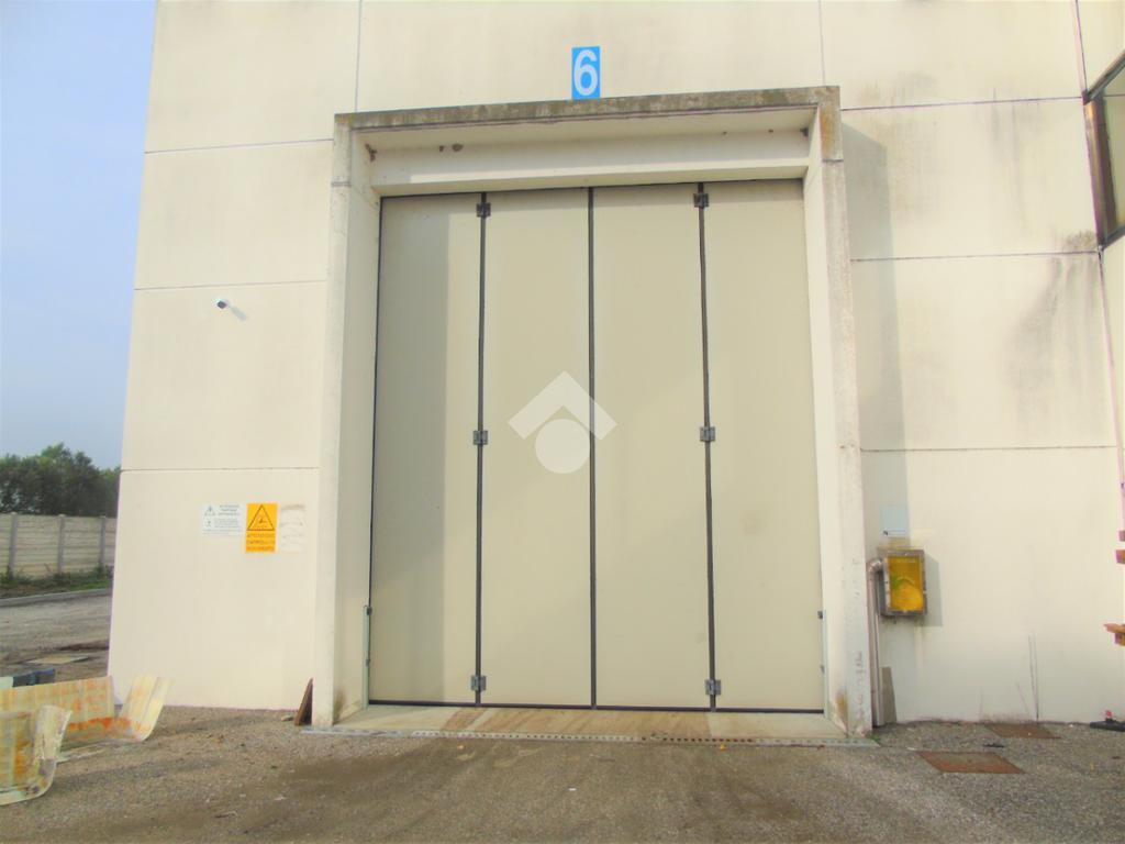 Il capannone presenta n. 3 portoni industriali alti 5,50 metri e larghi 4,50 metri, posizionati su 2 lati (n. 2 portoni sul lato sud e n. 1 portone sul lato ovest) e relativo piazzale sui lati nord-ovest di circa 1000 mq utile alla sosta degli automezzi per le operazioni di carico/scarico ed uscita/ingresso degli automezzi dal capannone.