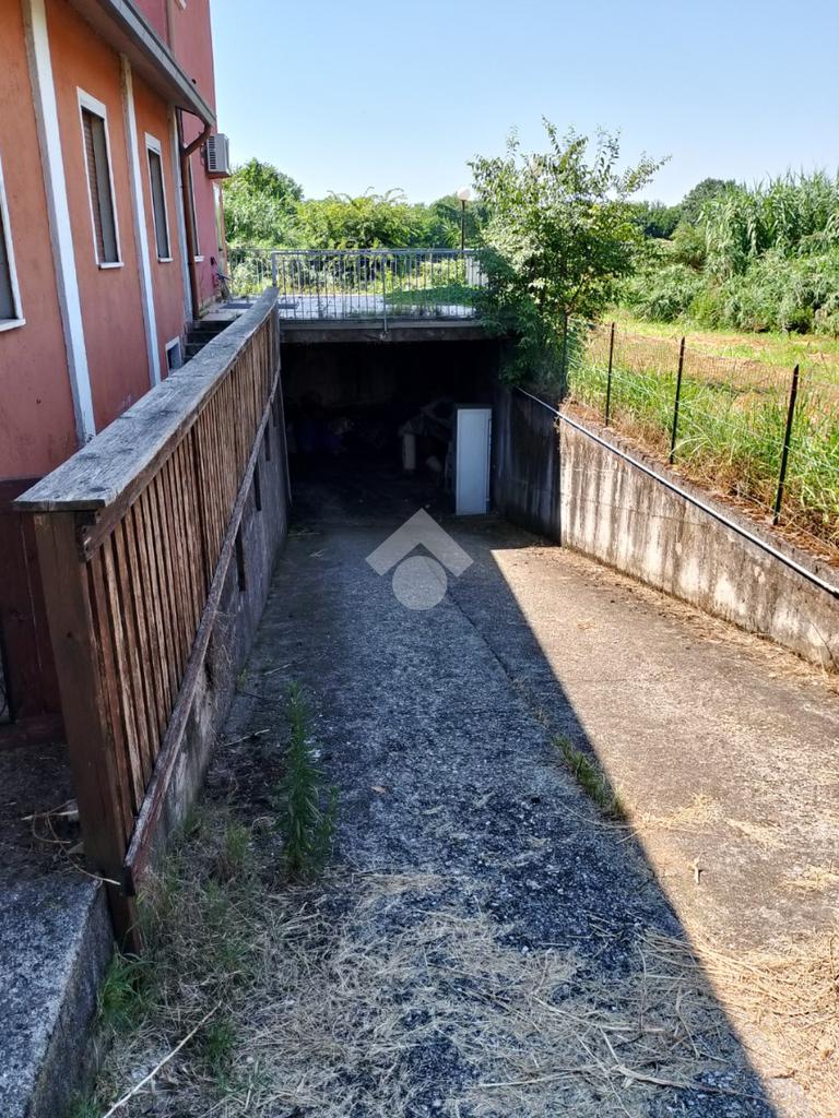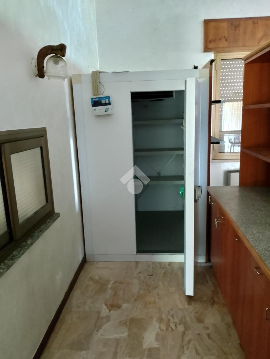Lateralmente si accede tramite rampa ai locali interrati di circa 150 mq adibiti a magazzino ed autorimessa.