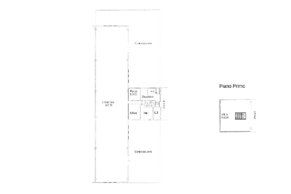 Lotto industriale di circa 1750 mq composto da superficie coperta di circa 950 mq caratterizzato da capannone con superficie di circa 800 mq (13 x 62) + blocco palazzina di 150 mq (12 x 13) su 2 livelli cadauno ed area di pertinenza esclusiva di circa 700 mq (300 mq sul lato sud e 300 mq sul lato nord con circa 100 mq di zona verde).